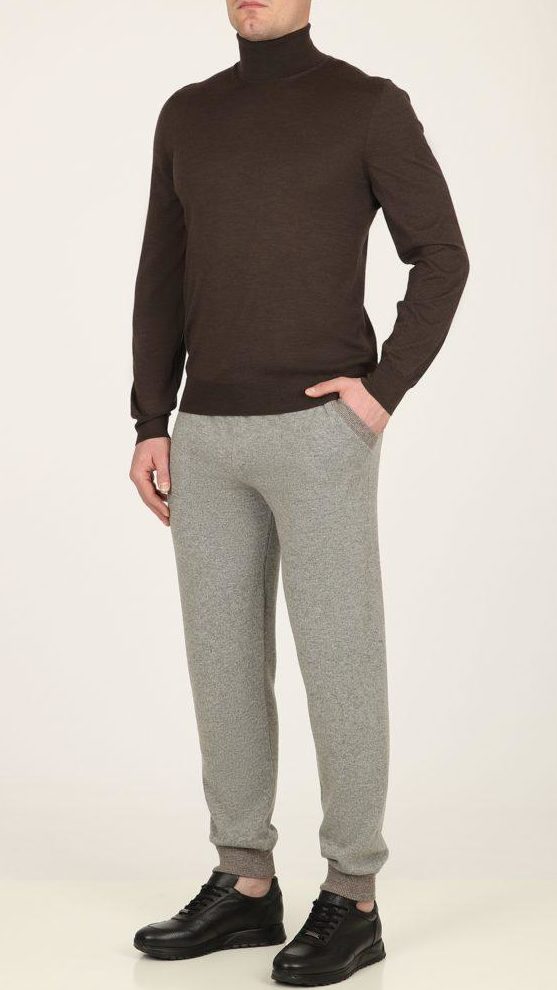 В серых меланжевых джоггерах из осенне-зимней коллекции, будет комфортно и на прогулке, и в путешествии, и во время отдыха. Для пошива модели использовали мягкую пряжу из смеси шерсти и кашемира, которая поддерживает оптимальную температуру и не сковывает движения. За удобную посадку на талии отвечает широкий регулируемый пояс-кулиска.