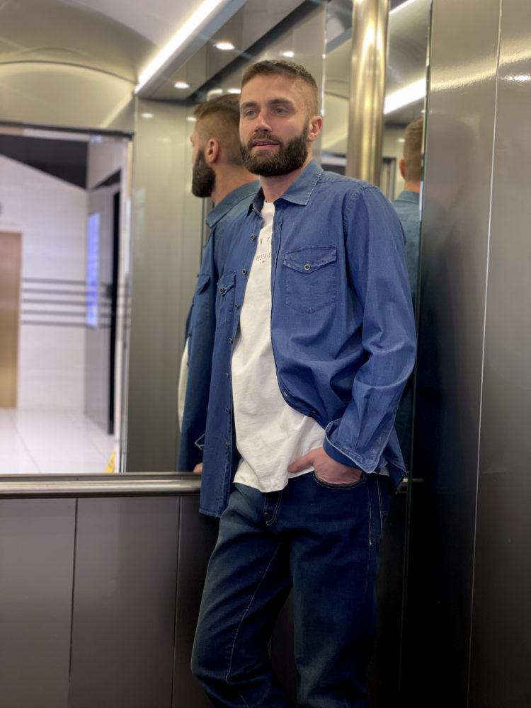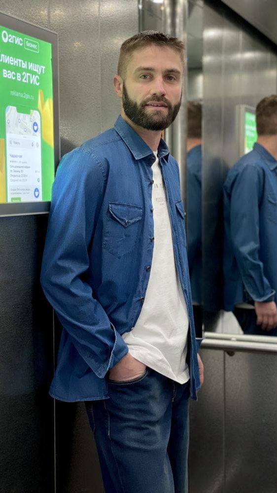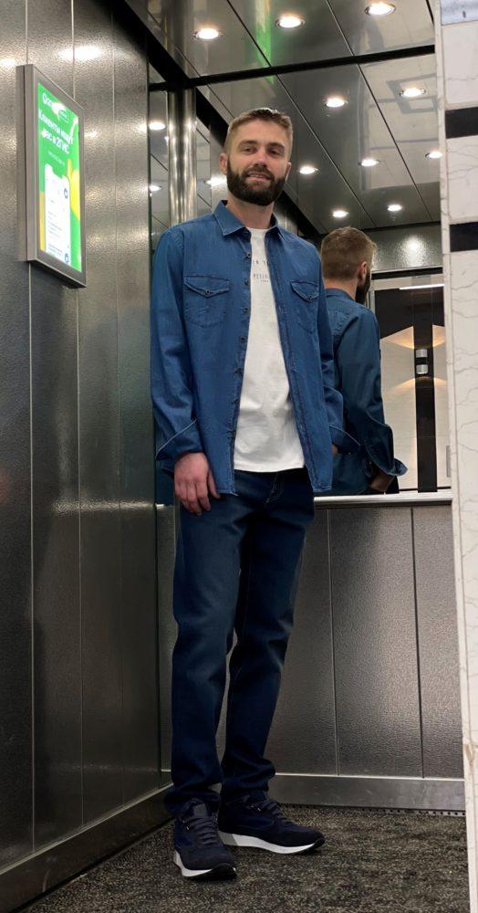 Рубашка насыщенного синего оттенка удобно садится по фигуре. Комфорт обеспечивает как силуэт, так и материал.