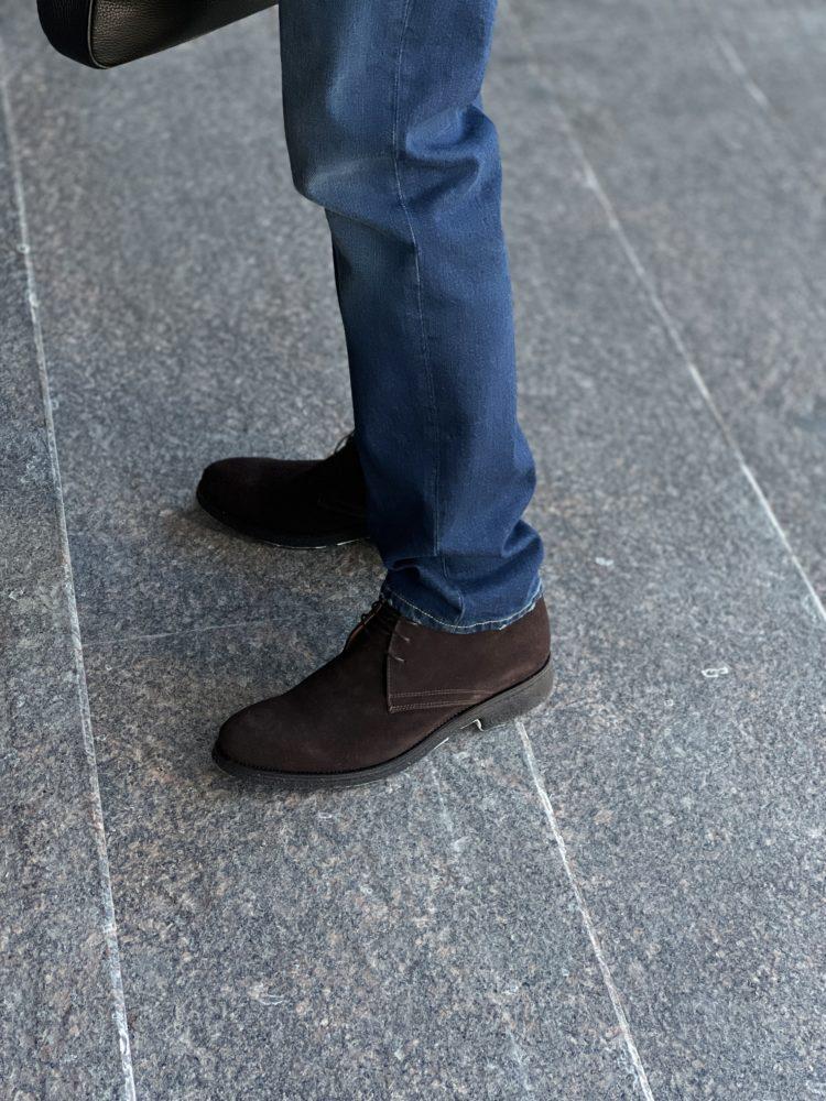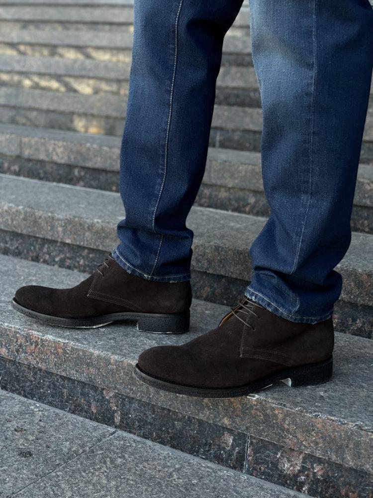 Для изготовления темно-коричневых ботинок с миндалевидным мысом мастера марки использовали фактурную замшу. Этот мягкий материал слегка тянется, потому модель со временем подстраивается под форму стопы.