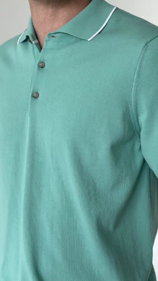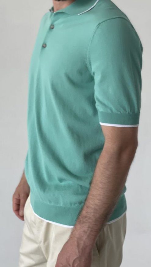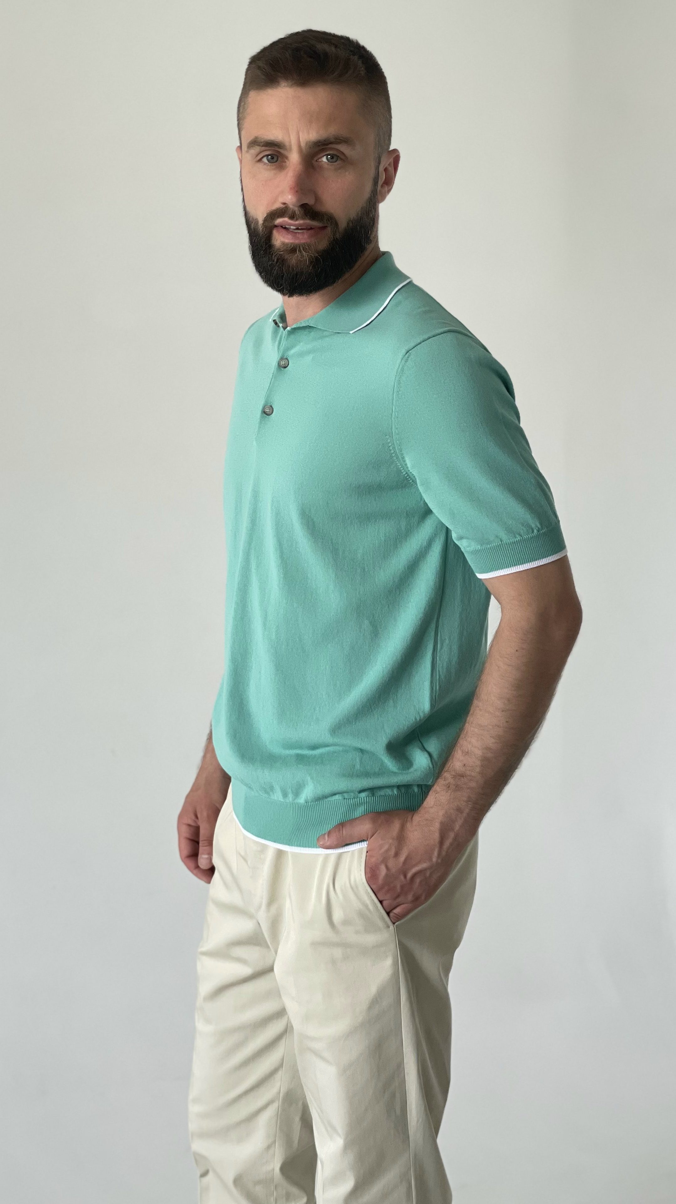 Бирюзовое поло с белым кантом на манжетах идеально подойдет, чтобы летом отметить очередной температурный рекорд. Мастера марки сшили свободную модель из тонкого фактурного хлопка, который не только легче обычного джерси, но и лучше отводит тепло, пропуская воздух. Лаконичное изделие вошло в весенне-летнюю коллекцию.