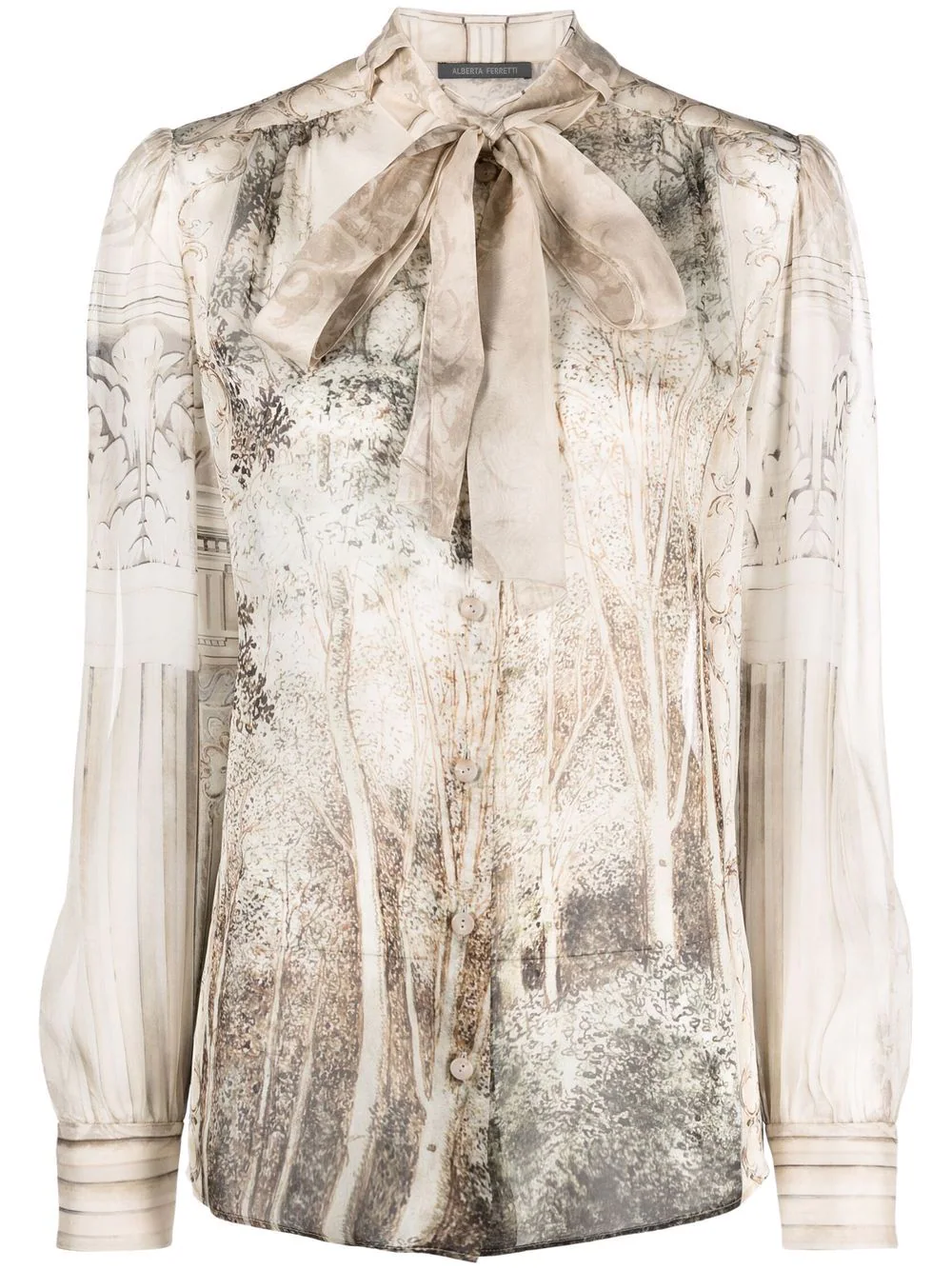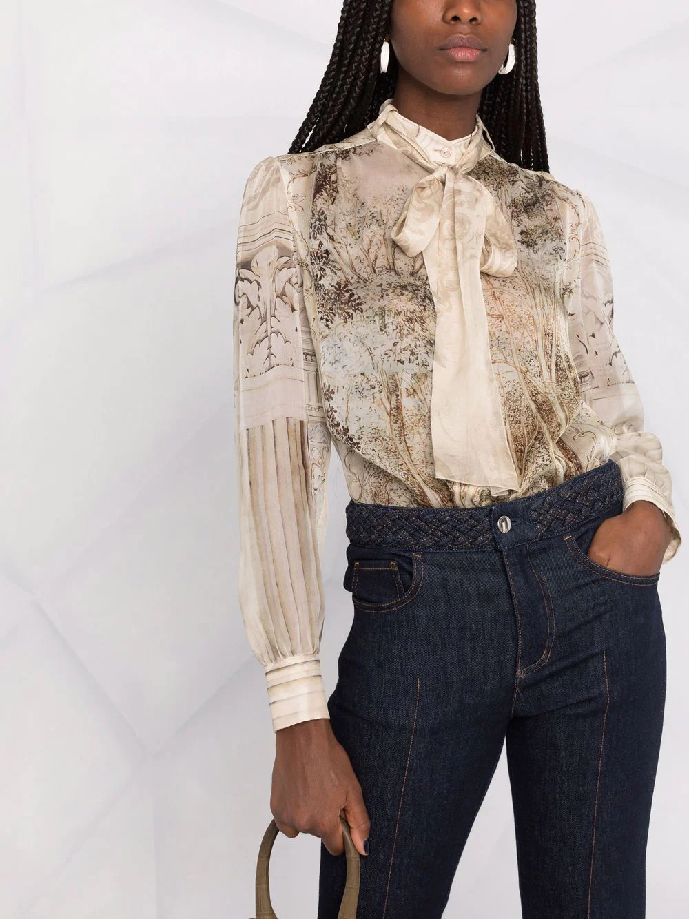 Шелкова блуза с декоративным бантом в этническом стиле.