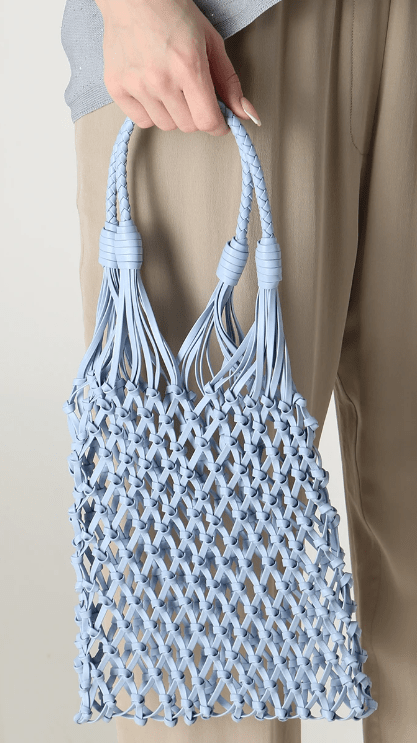Кожаная плетеная сумка от итальянского модного бренда Gentry Portofino. Модель небесно-голубого цвета, вытянутой прямоугольной формы с двойными верхними ручками. Этот аксессуар добавит оригинальности в ваш повседневный образ.