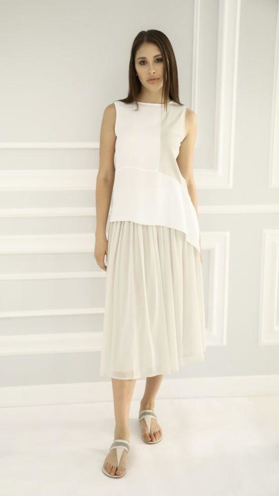 Белая блуза с коротким рукавом и ассиметричным низом. Эластичная однотонная модель из хлопка и шелка с круглой горловиной и короткими рукавами хорошо пропускает воздух, создавая ощущение комфорта на весь день. Наши стилисты предлагают создать образ со струящимися брюками.