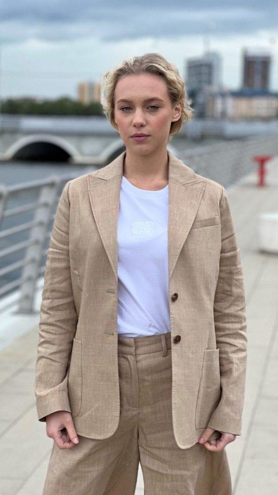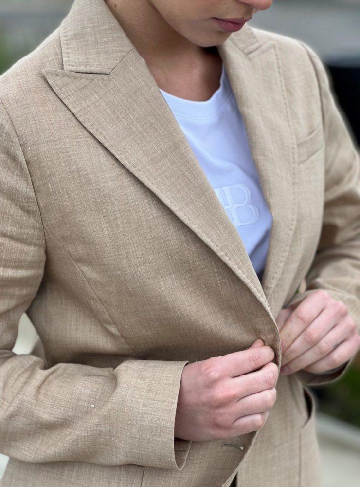 Жакет из тонкого мягкого льна, который не допускает перегрева благодаря природным свойствам льняных волокон. За счет исключительного уровня конструирования и обработки деталей вещь идеально садится по фигуре.