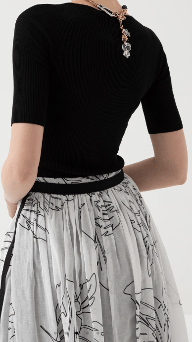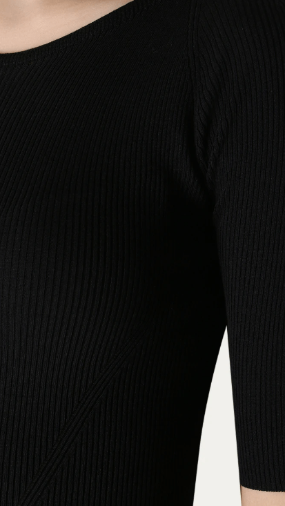 Тонкий джемпер с коротким рукавом от итальянского модного бренда. Эластичная и невероятная мягкая ткань из смеси шёлка с натуральным хлопком приятно облегает тело, подчеркивая достоинства фигуры, обеспечивает высокий уровень воздухопроницаемости, поддерживая максимально комфортную температуру тела. Перед изделия декорирован еле заметными линиями тонкой перфорации. Лаконично будет смотреться с юбкой-миди или классическими брюками.