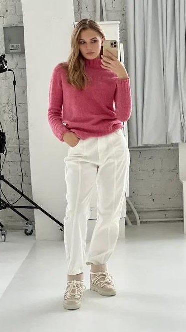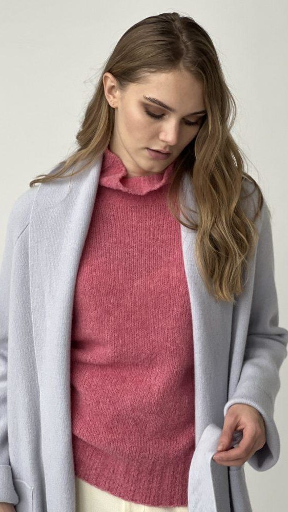 Лососевый оттенок свитера добавит яркости Вашему образу. Свитер получился максимально комфортным, свободный силуэт и рукава со спущенной линией плеч не сковывают движения, а шерстяная пряжа не только согревает, но и практически не ощущается на теле. В прохладную погоду изделие станет выгодным компаньоном любого повседневного образа.