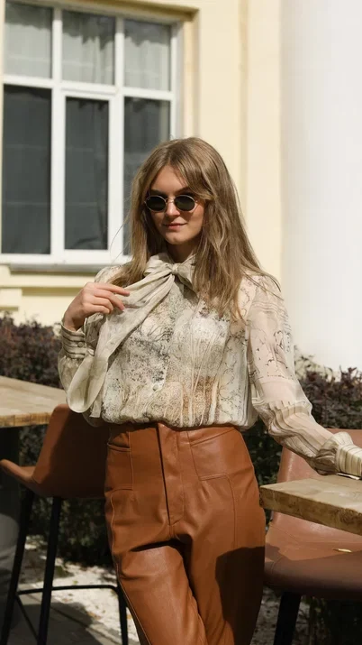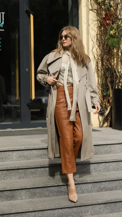 Брюки в красивом карамельном оттенке из натуральной кожи. Данная модель имеет комфортную высокую посадку и укороченную длину.