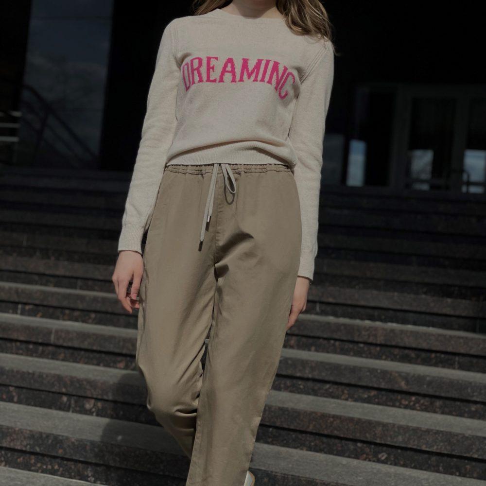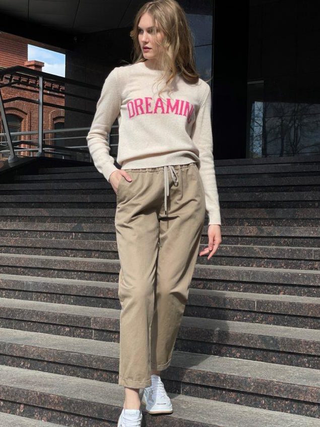 В сезоне весна-лето очень актуальны брюки с отворотами, данная модель в базовом бежевом цвете. В укороченной модели будет комфортно весь день, премиальный хлопок хорошо пропускающего воздух. Не менее удобным изделие делает регулируемый пояс-кулиска.
