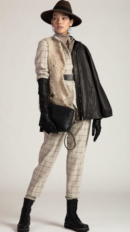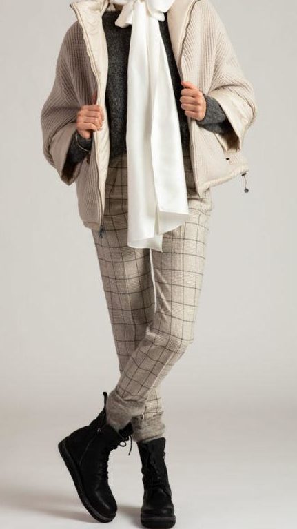 Брюки с высокой посадкой в клетку от итальянского бренда. Модель очень комфортная и теплая, выполненная из фактурной шерсти и кашемира, на лицевой стороне располагаются вытачки, благодаря которым данное изделие сядет идеально по фигуре, молния находится сбоку, к низу изделие подогнуто и сужено. Отлично будет сочетаться с клетчатым пиджаком с такой же фактурой ткани, однотонной водолазкой в теплых оттенках, также можно дополнить образ кожаной сумкой и полуботинками.