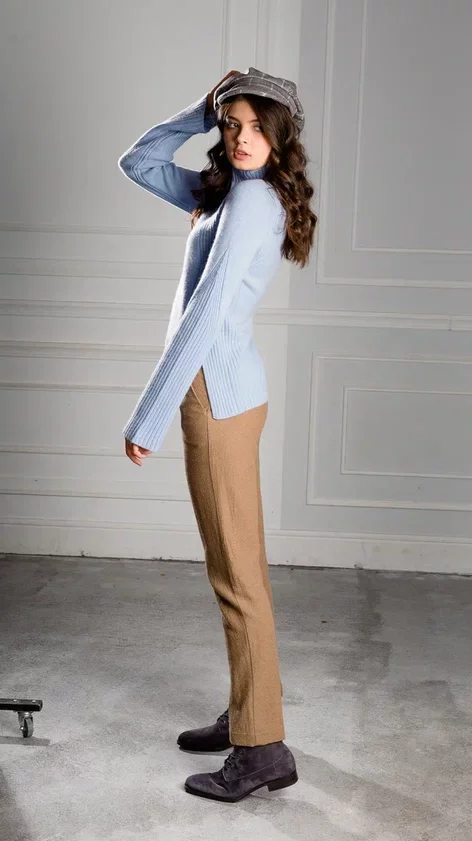 Брюки из фактурной шерсти в нейтральном бежевом цвете. Зауженные бежевые брюки будут уместны в офисе, впишутся в повседневный комплект, но не потеряются в образе.
