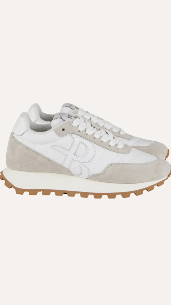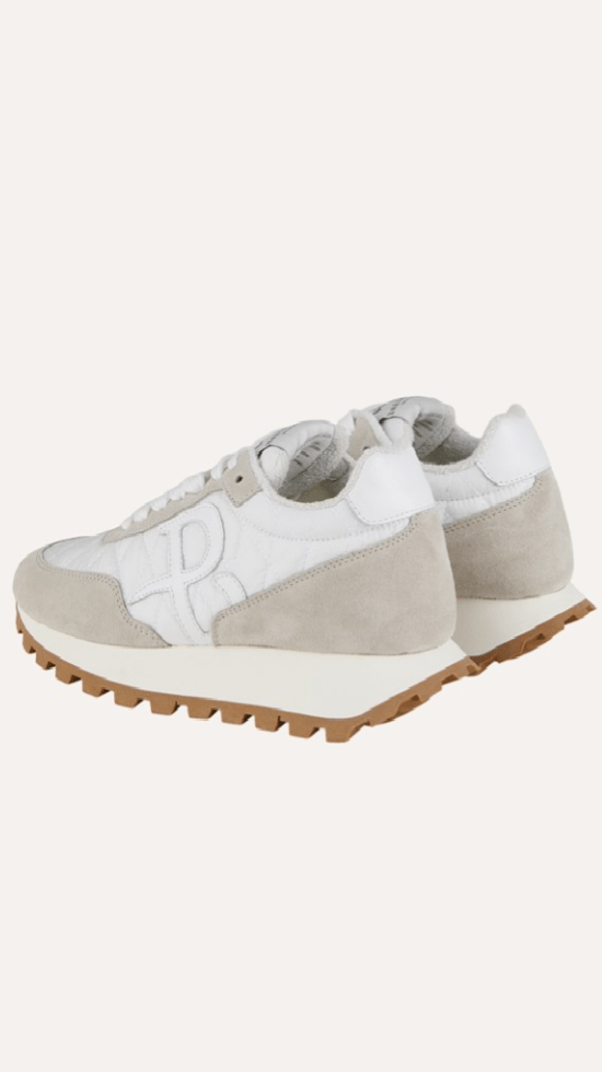 Кроссовки Ballantyne представлены в белом цвете, одна из новинок коллекции весна-лето 2023. Логотип “B” из натуральной кожи вышит сбоку на ботинках. Внутренняя часть выполнена из хлопковой махры и кожи, а внутренняя часть утеплена, что делает ее удобной и мягкой.